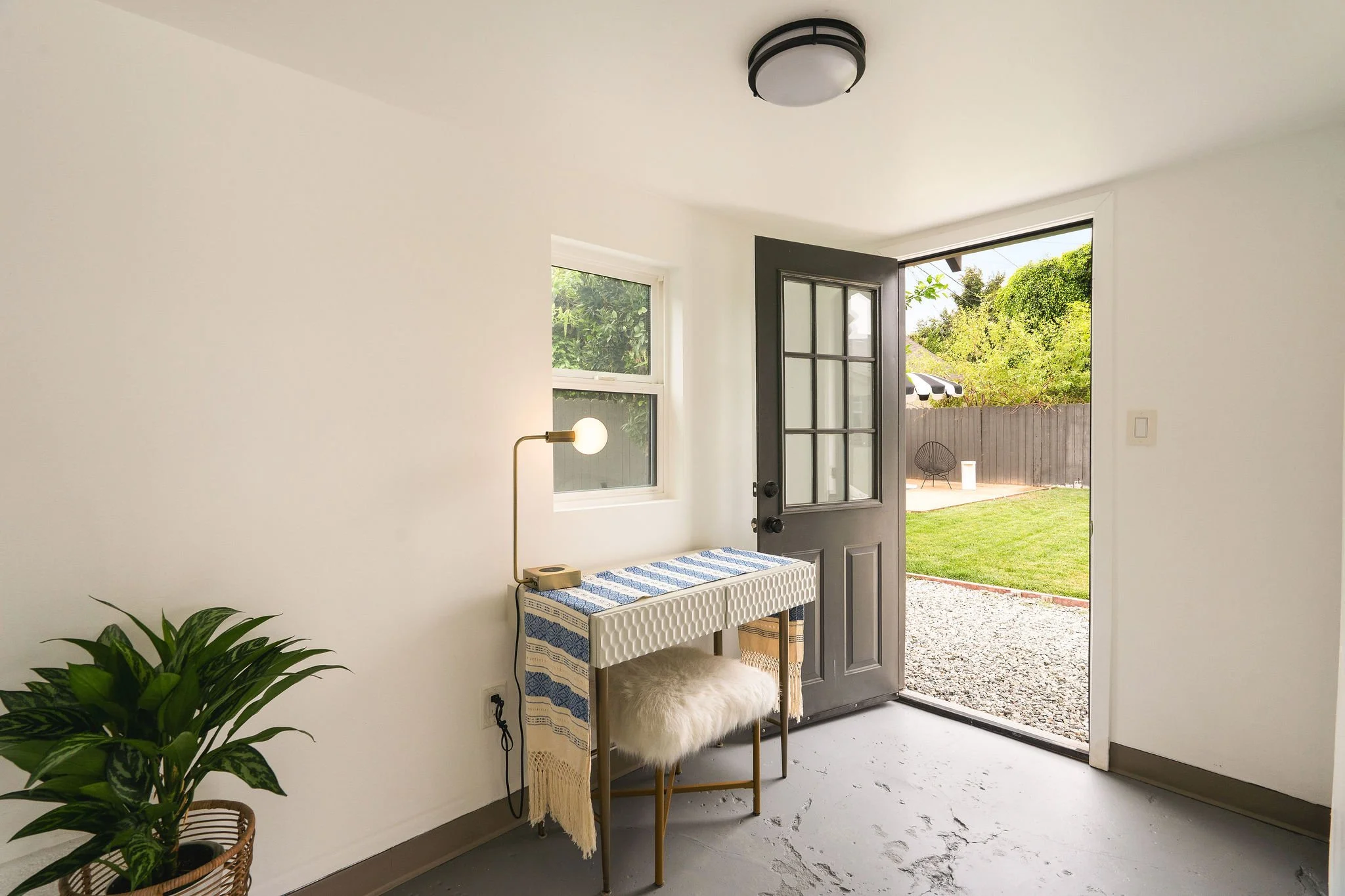 Welcome to this thoughtfully updated Long Beach home that combines modern amenities with flexible living. Step into a bright and inviting interior with a cozy banquette dining nook, tasteful custom Roman shades, and a beautifully equipped kitchen featuring a Café refrigerator & dishwasher plus Samsung range. Comfort is built into every detail with mini split systems in the living room and both bedrooms for climate control, while smart features like a ready-to-activate ADT security system with Google cameras, doorbell, and sensors provide peace of mind. Everyday living is streamlined with fiber internet, plus modern touches like a water softener and tankless water heater. The layout offers incredible versatility; inside, a bonus room adjacent to the laundry provides even more flexibility for the way you live and work. Detached garage has great ADU potential, while its existing flex space is perfect for a home office, gym, or studio. The expansive backyard is a rare highlight, ideal for gardening, weekend gatherings, or simply relaxing in your own private retreat. Existing orange trees add charm and the joy of fresh fruit right outside your door. This turnkey home is ready to adapt to your unique lifestyle.